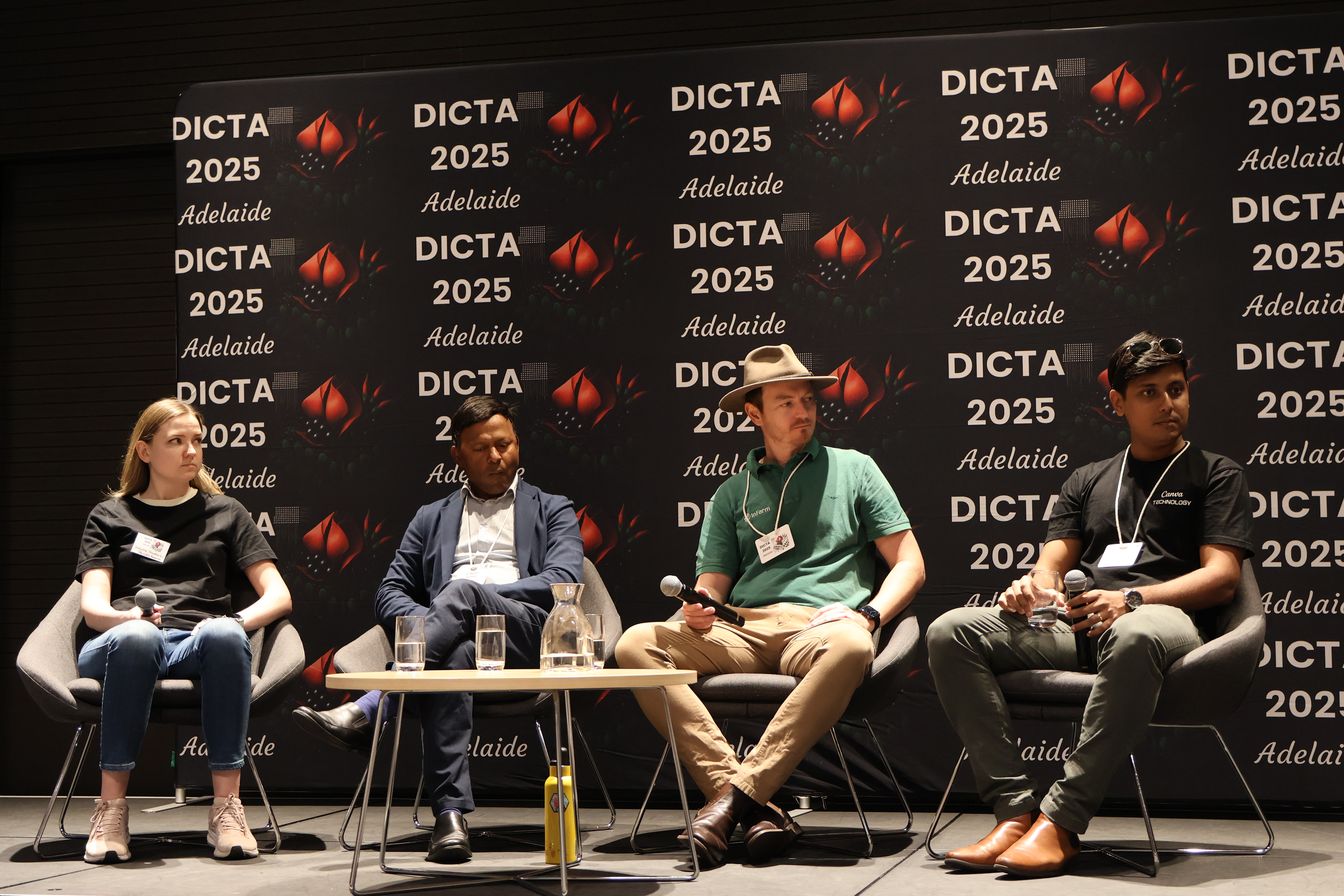DICTA is the premier conference organised in Australia on computer vision, image processing, pattern recognition, and related areas. Established in 1991, DICTA is the flagship conference of the Australian Pattern Recognition Society (APRS).Over the course of 3 days, DICTA 2025 featured several prominent speakers, including Georgia Institute of Technology Professor James Hays who discussed the accuracy of geo-location tools and the continued growth and use of apps such as GeoGuessr, while AIML Chief Scientist, Professor Anton van den Hengel, expanded on previous discussions of AI as a ‘stochastic parrot’.Alex London, Professor of Ethics and Computational Technologies at Carnegie Mellon University, wrapped up the keynote speeches with an energising talk on AI ethics and the effective development of responsible AI.DICTA Attendees experienced a fun run/walk along the Torrens River and a stellar gala dinner at the Adelaide Convention Centre featuring Michael Brown, MP, Assistant Minister for AI, the Digital Economy, Defence and Space Industries; a live band; and lots of dancing computer scientists.